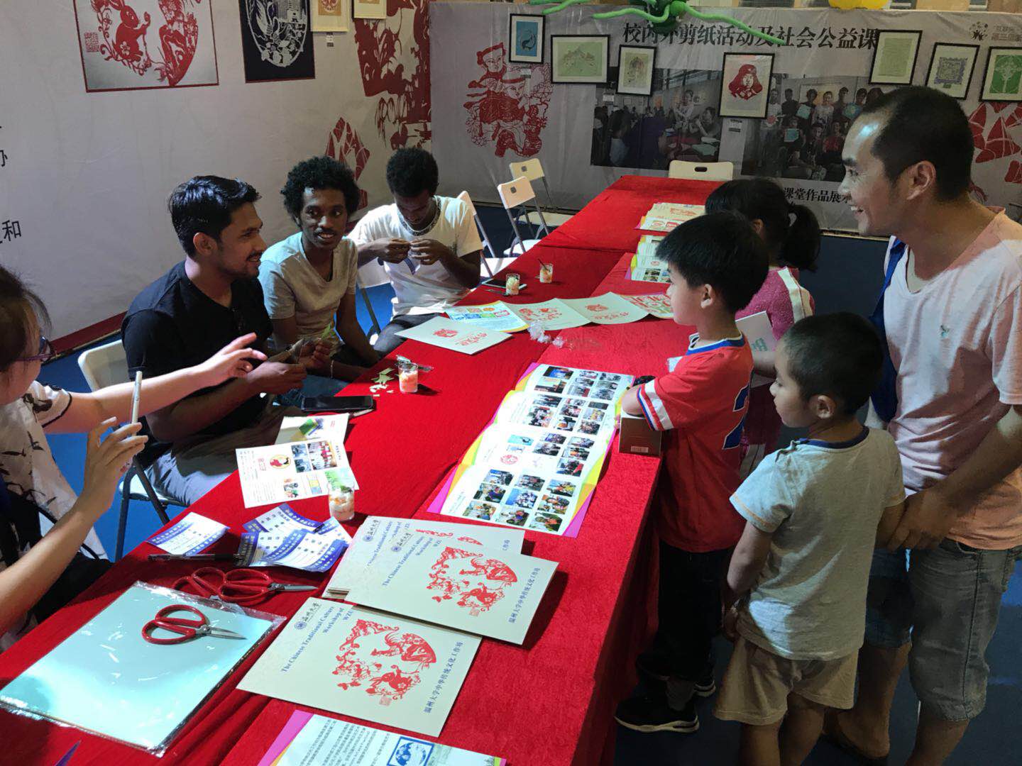 童博会期间,我校国际学生们现场展示分享了剪纸艺术,寥寥数剪,车辆、花卉、果蔬、人物跃然纸上,形象惟妙惟肖,栩栩如生。现场吸引了不少小朋友们和家长驻足观看与互动,小朋友与洋哥哥姐姐们通过剪蝴蝶、剪汽车、剪窗花拉进了彼此之间的距离,通过指尖传递了中国传统文化。