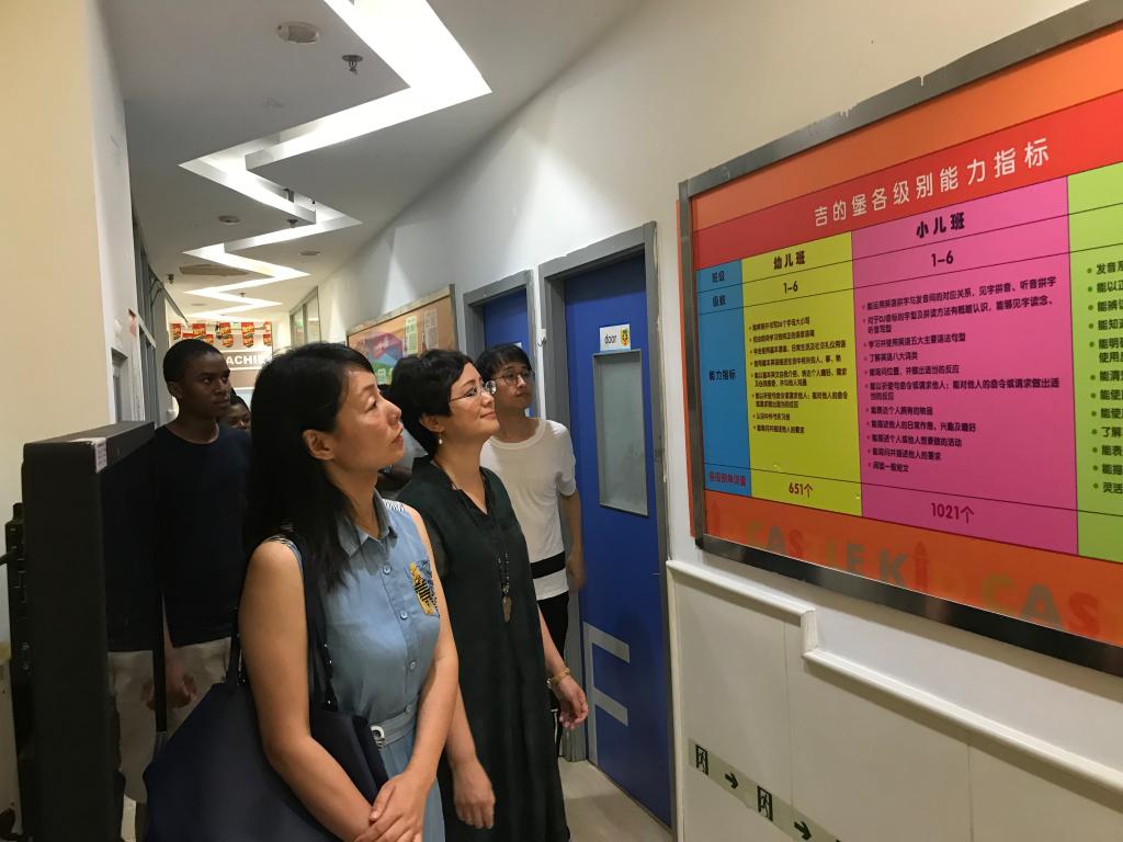 师生一行的到来表示热烈欢迎。她介绍了公司背景、发展历程、办学规模、师生及外教情况。国际学生依次介绍了自己的基本信息、专业特长和实习实践经历。2017级软件工程专业的NoahJude说:“我来温州大学之前曾有过教师经历,对幼儿教学十分感兴趣,这里的环境很舒适,希望将来有机会到吉的堡少儿英语学校实习实践。”