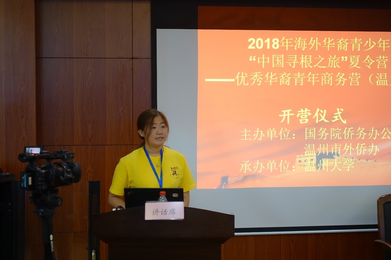 副院长、温州欧洲华文教育研究所执行副所长包含丽主持。共有来自法国、西班牙、葡萄牙、匈牙利、瑞典、德国等8个国家60名优秀海外华裔青年参加。