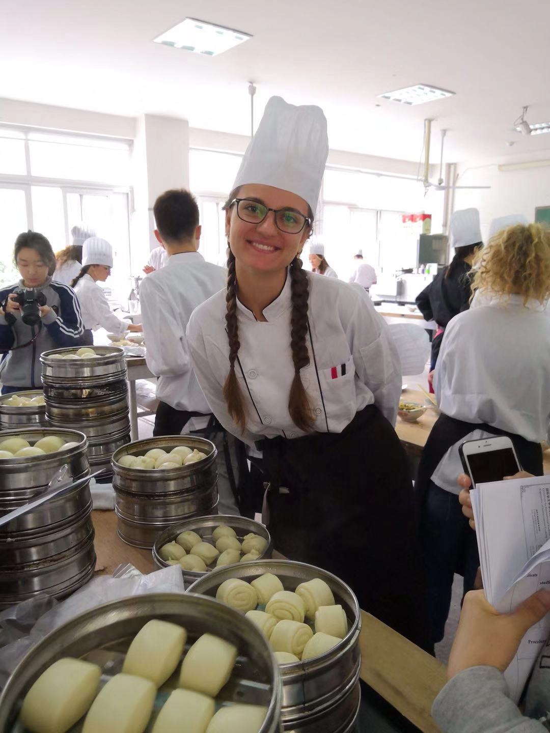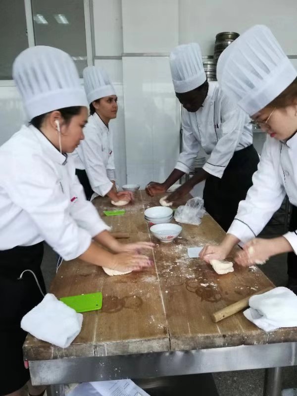 本期培训班共分四个主题:会切,懂刀工;会烹,掌火候;会柔,讲手法;会创,拼技艺。主要课程包括:中国传统的刀工技巧、中式冷盘、传统面点以及炒、爆、煸、炸、酥、蒸等各类常见的中式烹饪技艺。温州华侨职专高级技师王大勇、张淑燕等领衔的师资团队言传身教、一丝不苟,留学生们四人一组认真学习、努力践行,短短的三周内就基本上掌握了中国菜烹制作的基本要领,初步熟悉了各类中国菜肴制作的操作程序。留学生们经过中国菜肴的亲手制作更加了解了博大精深的中华文化,对接下来的中国传统文化学习起到了有益的作用。