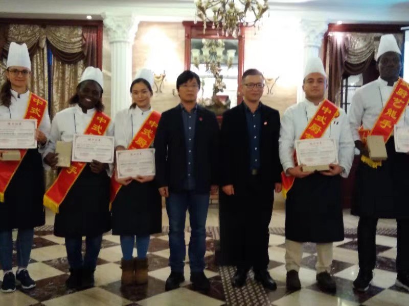 中华烹饪国际班在华侨职专的卢浮宫举行隆重的结业典礼暨本期培训班结业考试,所有留学生均顺利拿到了结业证书,其中还有人荣获“中式厨艺能手”的称号呐!结业典礼上展示的学生烹饪作品色香味俱全,不同肤色的留学生与展厅的中式餐饮礼仪中西合璧,相得益彰,构成了一幅中国风与国际范的完美画卷。