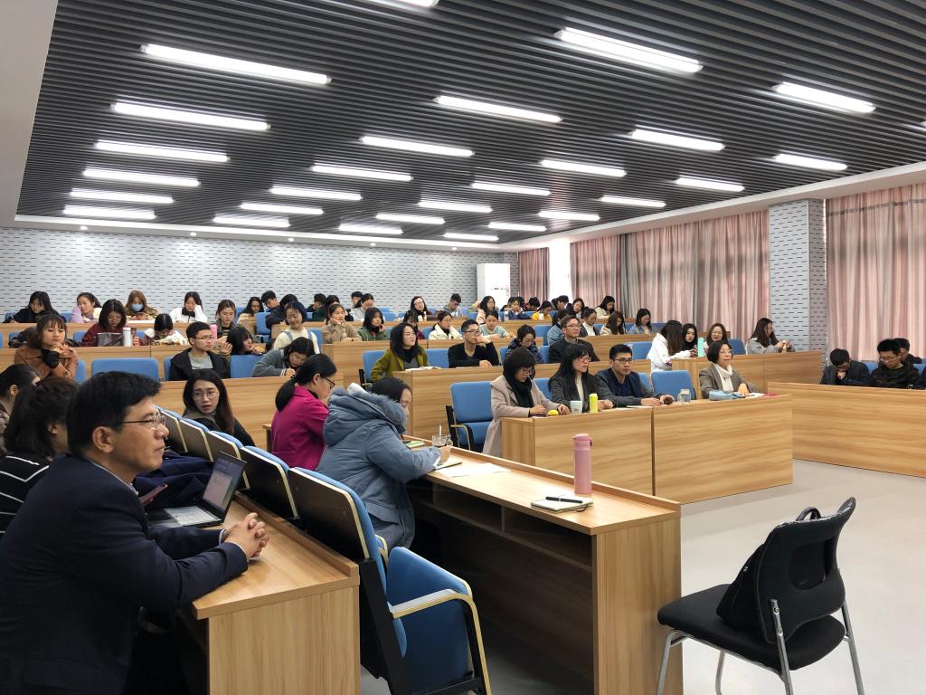 邀请浙江省委教育工委“学习新思想,千万师生同一堂课活动”讲师团成员、温州大学瓯江特聘教授、马克思主义学院副院长卓高生作改革开放四十周年专题讲座,学院全体师生聆听讲座。