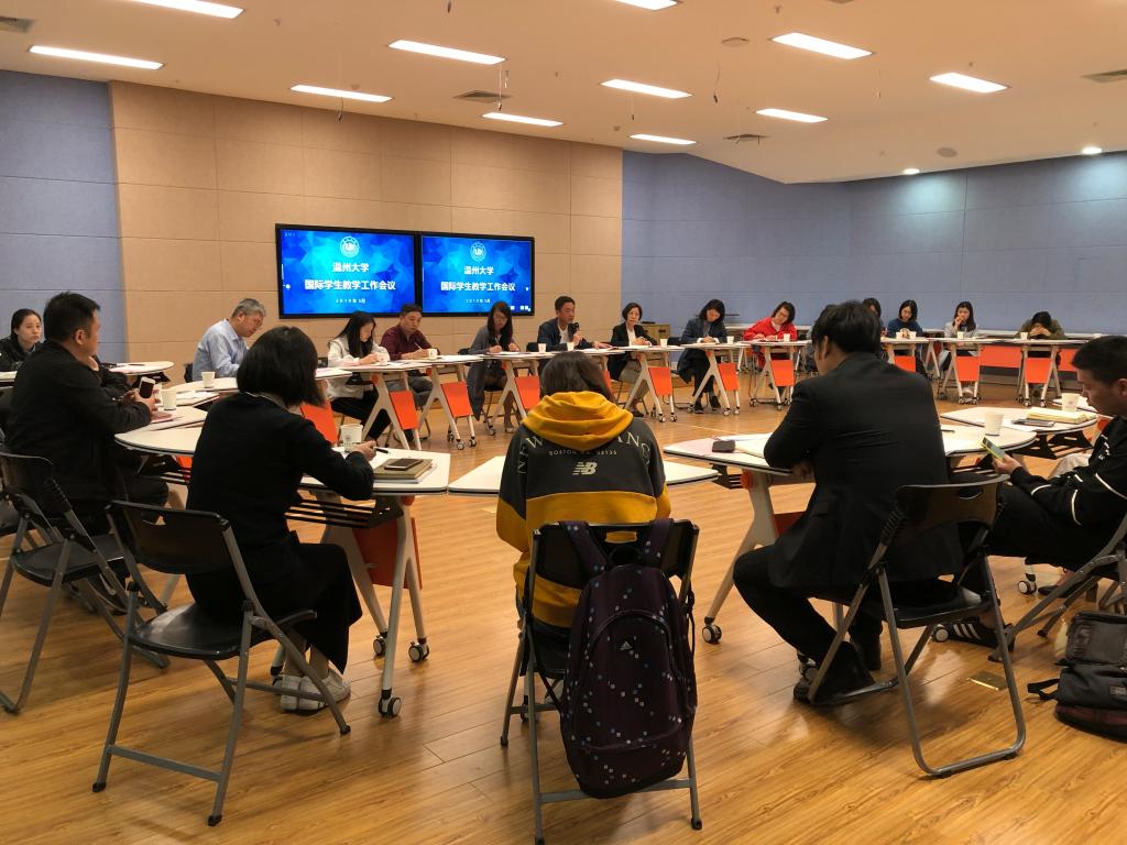 5月7日上午,我校国际学生教学工作会议在岩松堂叶适厅召开,副校长钱强、留学生教育与管理部相关负责人、各专业学院分管领导、国际学生专员及班主任参加了本次会议。留学生教育与管理部主任叶苗主持会议。