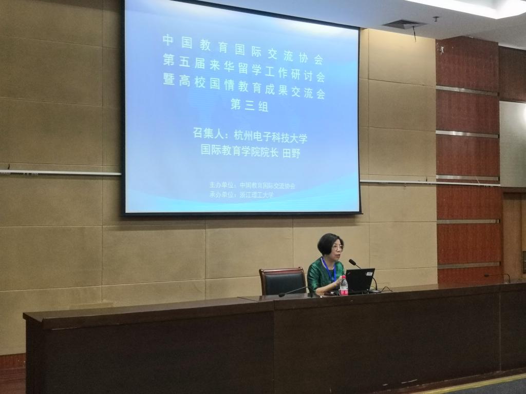 叶苗代表温州大学在小组交流会上分享了我校国际学生国情教育的经验做法,她从我校“国际视野,中华情怀”的国际学生教育理念出发,结合课程建设、项目研发、教学方法、始业教育和文化活动等内容予以展开,赢得与会代表的高度评价。