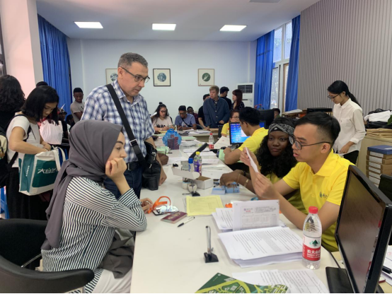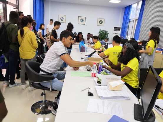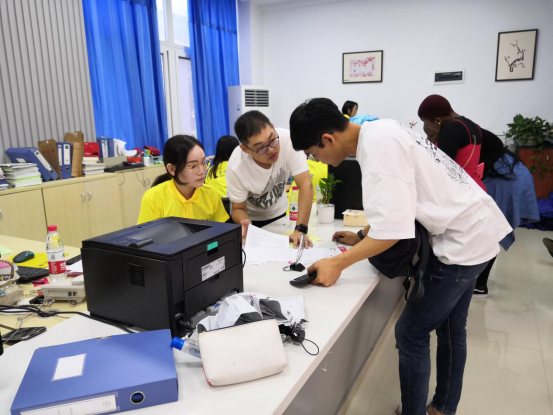 的党员、教师、中外学生志愿者们践行“不忘初心,牢记使命”主题教育工作会议精神,纷纷全身心投入到火热的迎新工作中。从学生手册、校园地图等新生材料的准备,到场地的精心布置,耐心指导国际新生进行注册,热情服务让国际生入住公寓,每一个环节,事无巨细,工作组都考虑得非常周全。