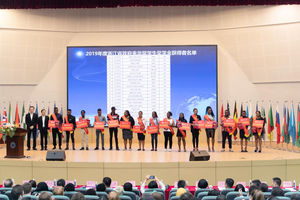 10月23日下午,我校2019级国际新生开学典礼暨第四届国际文化周开幕式在南校区9号楼报告厅顺利举行。来自俄罗斯联邦、坦桑尼亚、意大利的207名本科生、硕士生、汉语言生和交换生将在这里开启他们的留学生涯。温州市人民政府外事办公室副主任周怀中、温州市教育局对外合作与交流处副处长陈炜、温州大学副校长钱强、学校相关部门和学院负责人、师生代表和国际学生奖学金获得者参加此次典礼。