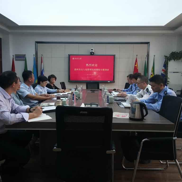 专题调研表示热烈欢迎。他介绍了国家相关留学政策及近年来我校国际学生的招生情况,并感谢市公安局尤其是出入境管理局对我校留学工作的大力支持。