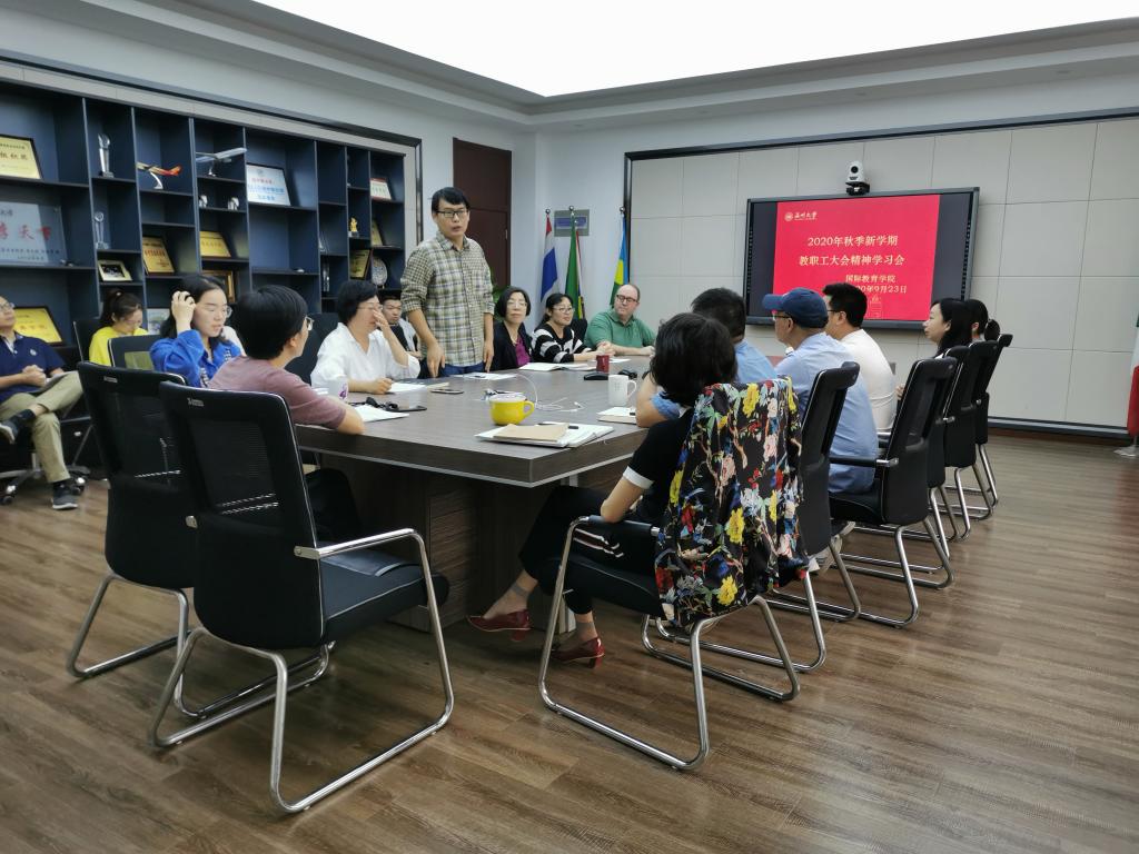 全体教职工在国际楼311会议室深入学习2020年秋季新学期教职工大会精神,大会学习了谢树华书记的《扛起发展新使命,奋力谱写新篇章》以及赵敏校长的《坚定信心、乘势而上,以“重要窗口”标准奋力推进高质量发展》等相关文件,与会的教师们踊跃发言,积极讨论,以下是部分教师的发言: