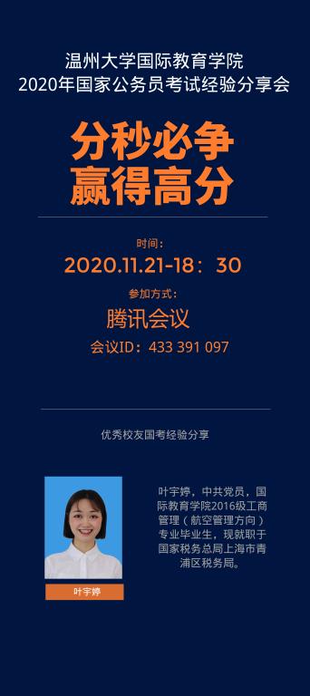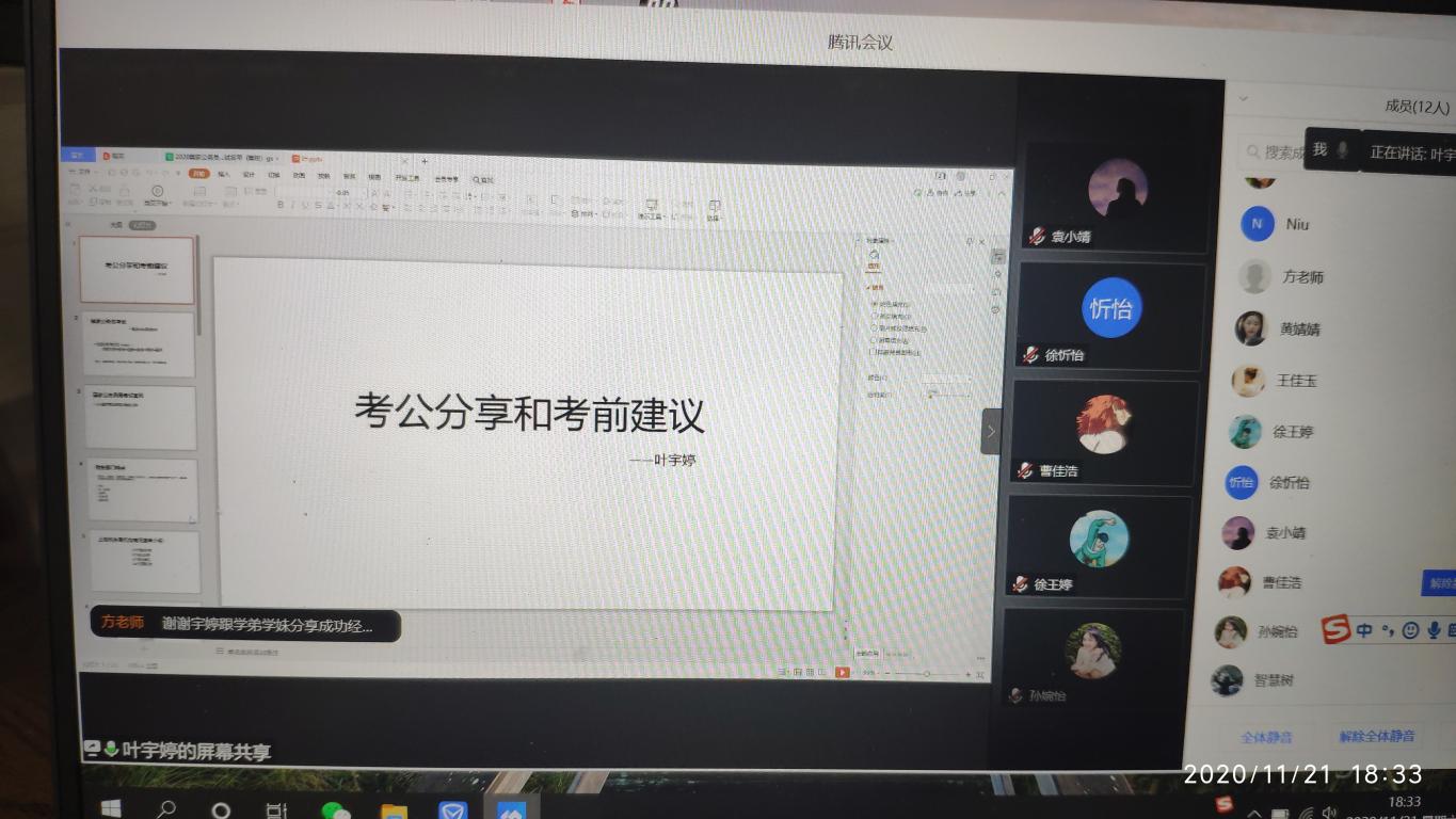 优秀校友,现就职于国家税务总局上海市青浦区税务局的叶宇婷作为分享嘉宾,学院党总支副书记方建晓参加了会议。本次分享会由学工办辅导员吴铨铨主持。