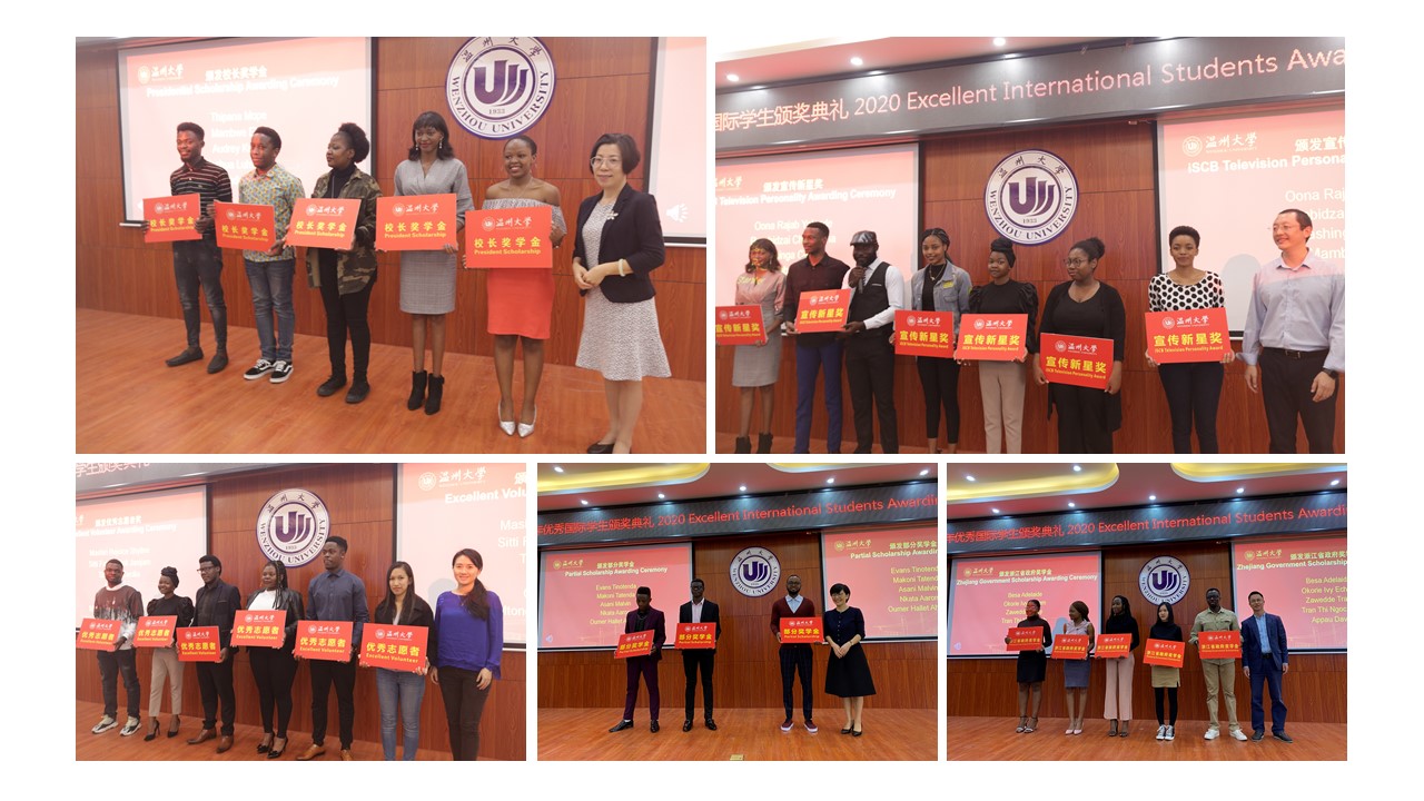 外籍教师Michael主持,第一项议程为叶苗院长宣读“关于公布温州大学2020年校长奖学金、部分奖学金和浙江省政府奖学金获得者名单”的文件,现场奖学金获得者看到自己的名字出现在屏幕上纷纷欢呼鼓掌。嘉宾们依次为优秀国际学生们颁发奖学金证书,奖学金代表AUDREY KUFFER、NKATA AARON和APPAU DAVIS分别发表了获奖感言,鼓励大家继续努力学习,只有脚踏实地才能有所收获。看着台上获奖学生脸上灿烂的笑容,相信接下来他们会再接再厉,取得更大的进步。