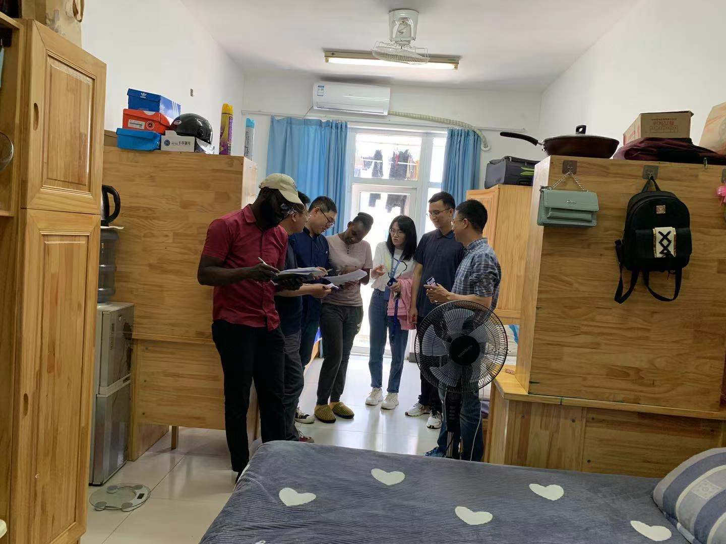 (留管部)学工办在国际学生D区公寓开展例行安全检查,学院党总支副书记方建晓、学工办全体辅导员参加。