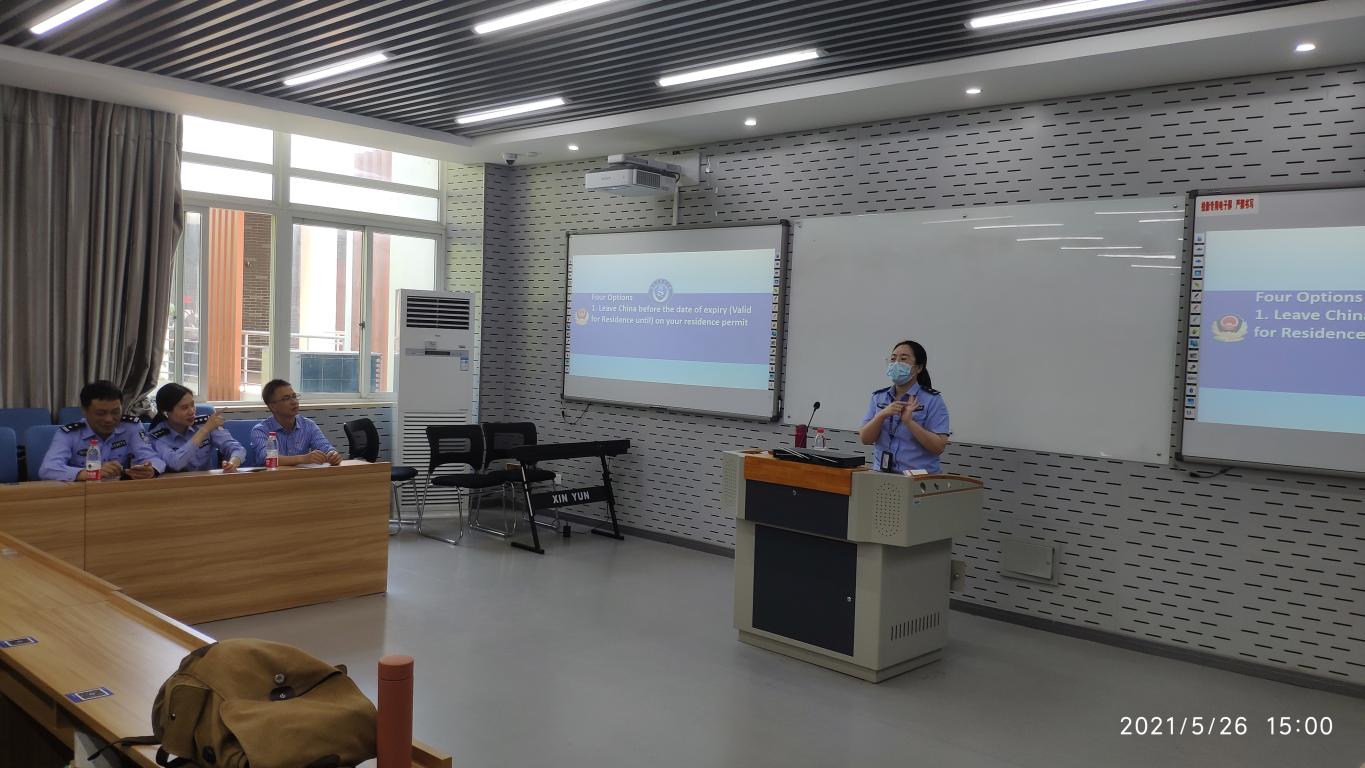 在提问环节,留学生就全球疫情下离境问题、停留签证申请材料办理等细节作进一步了解。出入境警官也对此一一解答。