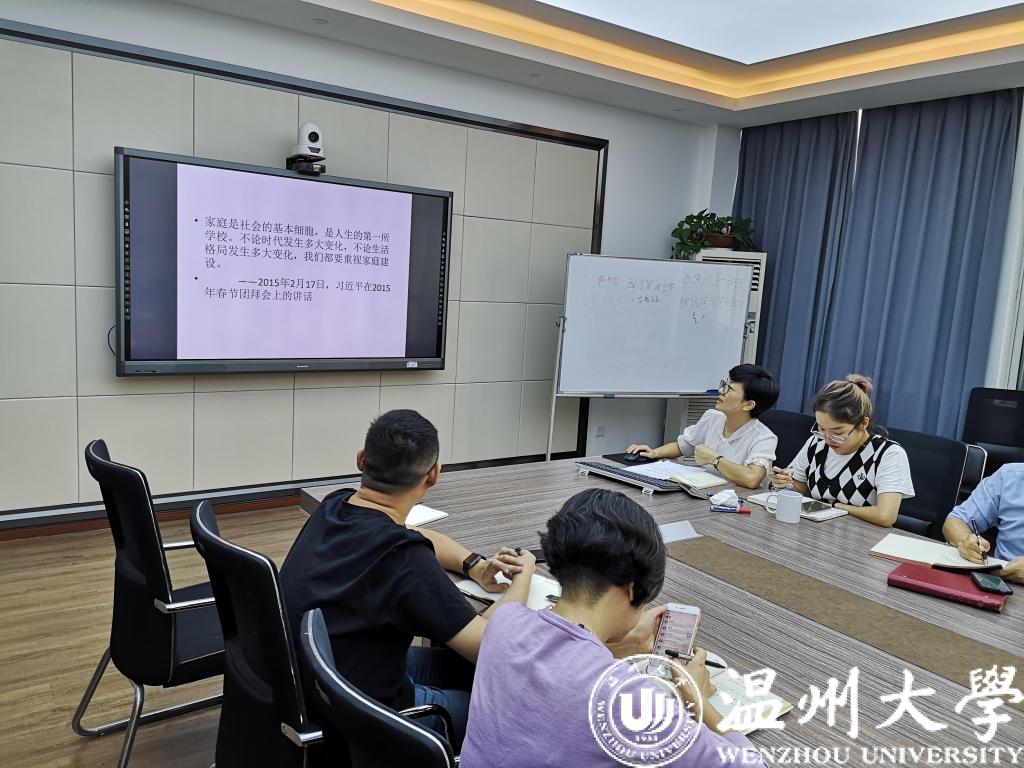 召开学院二级理论学习中心组专题学习会。学院党总支书记林爱菊带领大家学习习近平总书记关于注重家庭家教家风建设论述。