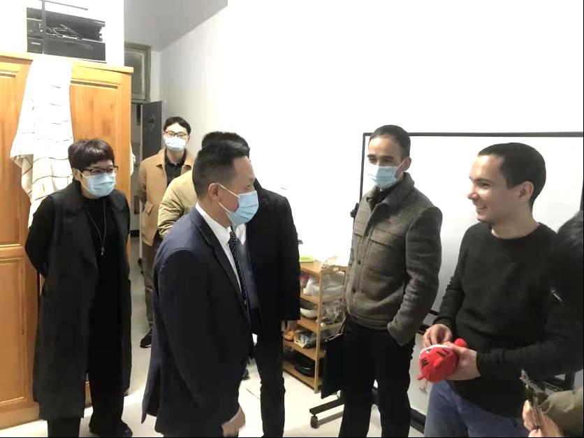 随后在学院领导班子的陪同下,王校长一行走访国际生公寓,对学生们的生活与学习表示亲切慰问与关心。