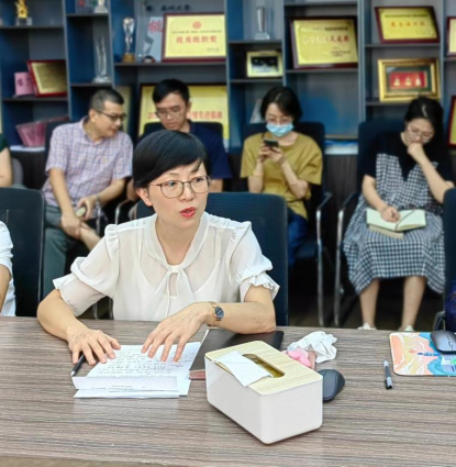 2022年秋季新学期全体教职工大会在国教楼311会议室召开,会议由党总支书记林爱菊主持。