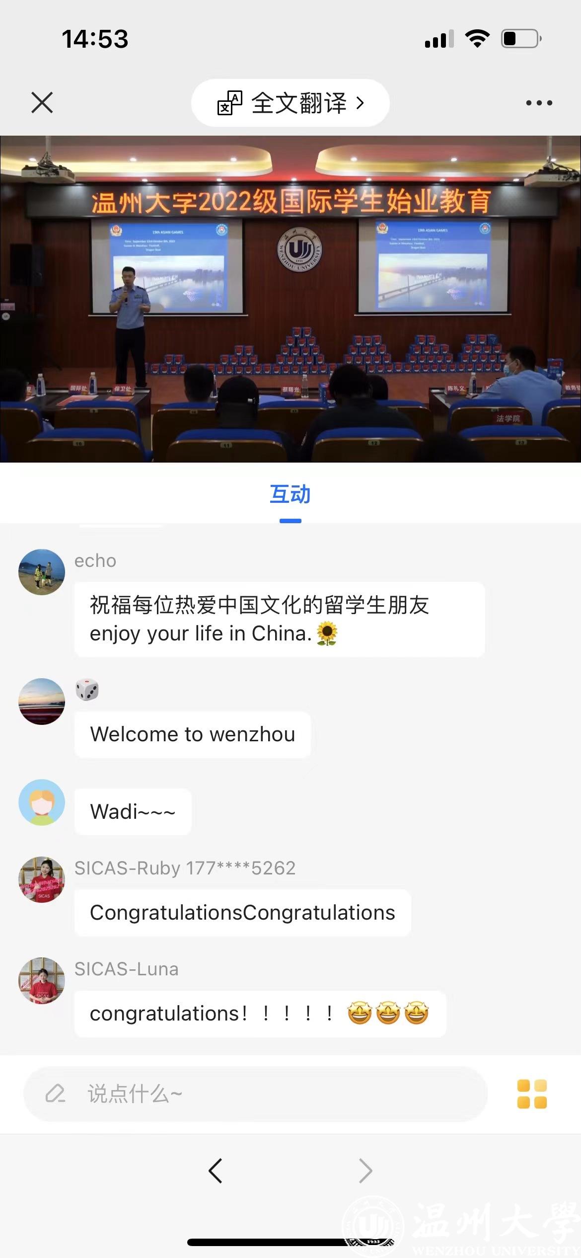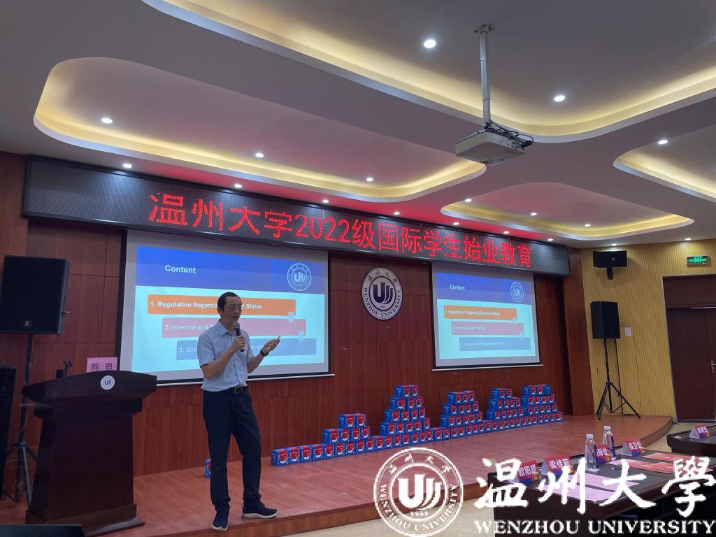 副院长熊勇和同学们解读了《温州大学国际学生学籍管理规定》,同时他希望全体同学要以学业为重,认真学习中国文化和专业知识,努力成长为学识渊博、专业扎实、知华友华爱华的新时代国际学生。
