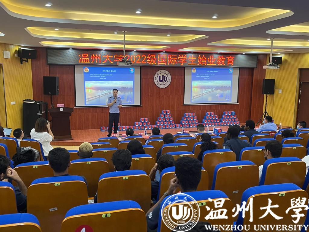 为帮助2022级国际新生全方位了解国情、校情,以全新面貌和昂扬姿态开启留学温大生活。9月15日,为期一周的2022级新生始业教育活动在开学典礼后拉开序幕。温州市出入境管理局欧阳超警官,瓯海区出入境管理大队麻晓军、陈礼义、梁佳莉警官,茶山派出所民警陈海敏,校图书馆吴凤仙,日本成人无码