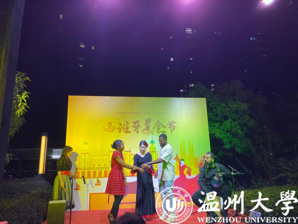 10月14晚上,来自葡萄牙、马来西亚、尼日利亚、冈比亚等国家的留学生在铂尔曼酒店参加了一场丰富多彩的西班牙美食节活动。
