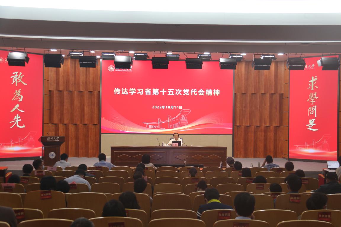 、化学与材料工程学院教职工传达省第十五次党代会精神。