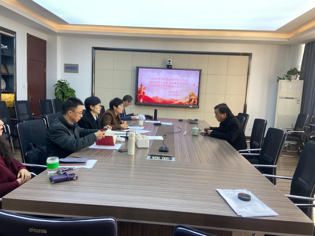 领导班子在国际楼311会议室召开2022年度班子民主生活会暨党风廉政和意识形态工作分析会,学院领导班子成员参加会议,会议由党总支书记林爱菊主持。校党委委员、副校长蔡曙光全程指导。