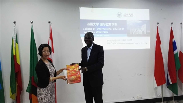 副校长钱强对大使先生的来访表示欢迎,国际学院院长兼书记叶苗教授简要介绍了温州大学的基本办学情况、“十三五”国际化发展战略和日本成人无码 的基本情况,着重介绍了我校留学生教育理念和情况。学校发展留学生教育的宗旨是:扩大规模、提高层次、规范管理、亲情服务、发展特色、增进友谊。大使先生对我校的创业教育和留学生教育方面的成效表示高度赞赏,并希望通过此次访问,开启贝宁学生到温州大学学习的新起点,加强中贝文化教育交流。贝宁是法语国家,双方还探讨了法语授课专业建设等问题。