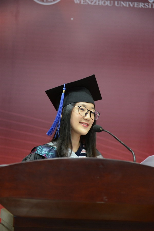 丹麦尼尔斯布鲁克哥本哈根商学院校长Anya Eskildsen致词。她说,温州大学聚集了哥本哈根商学院海外合作项目中最优秀的学生。她用形象生动的故事叙述了毕业的意义,并希望毕业生们不管是继续深造还是踏上社会,都要微笑着面对学习和生活,期望他们在今后的人生旅程中继续努力拼搏,为自己创造一个更加美好的未来。
