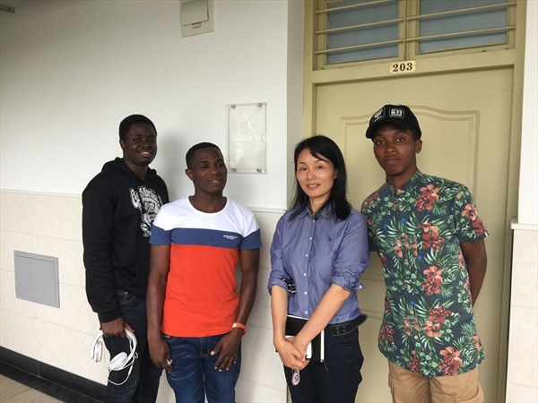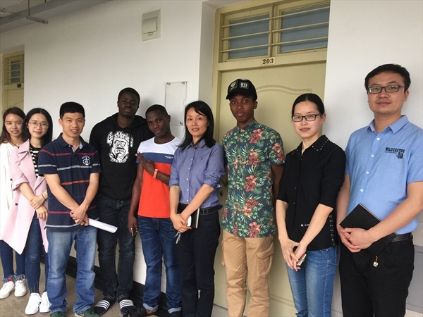 (留学生教育与管理部)党总支副书记陈文远、学生科副科长谢坚等学生科全体人员走访了溯初学区、专家楼的留学生公寓,与国际青年共度“五四”青年节。
