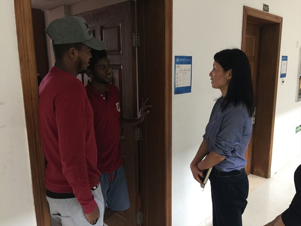 来自坦桑尼亚的留学生WINNER KELVIN特别健谈,她从对课程设置、公寓整体环境以及食宿情况等方面作了深入的交流。走访的老师们一一记录下收集到的意见建议,并及时反馈给相关单位去逐步完善、落实。