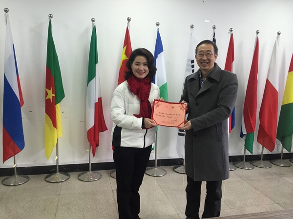 2月24日,温州市文化馆曾春玲老师被聘为温州大学国际合作学院客座教授,学院院长严晓鹏博士向曾春玲老师颁发了证书。