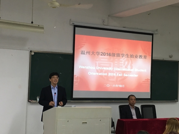 10月11日上午9点,温州大学2016级留学生新生见面会在北校区3号楼203报告厅举行,160余位新生悉数到会。出席本次见面会的有国际合作学院党总支书记朱建平、副院长陈军,温大-SICAS留学中国协同创新中心主任张璐,国际学院各科室负责人以及其他相关人员等。
