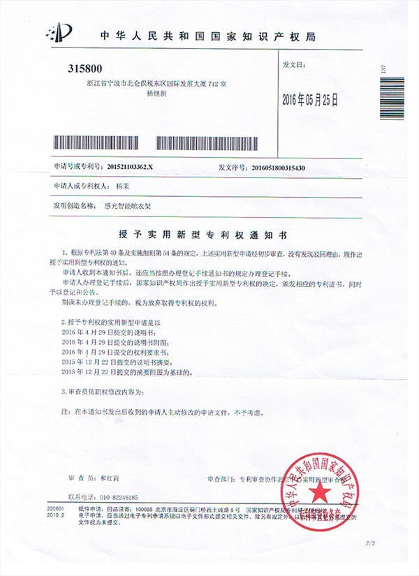 日前,温州大学国际合作学院2013级电子信息专业(两岸合作项目)学生杨茉、陈若南和张姚瑶三位同学共同研发了“感光智能晾衣架”,获国家实用性新型技术专利,并在台湾中华大学举行的结业典礼上受表彰。
