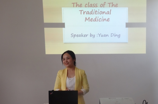 乌卓妍女士用流利的英语将艰涩难懂的中医养生知识传递给每位留学生,向留学生们展示了历史悠久的中医文化和养生之道,从中医的基础知识出发,用图文并茂的形式重点介绍了人体常用的保健穴位,同时带领大家轻轻捶打或按摩穴位,体验相关穴位的保健方法。乌女士当场示范,让所有的留学生都体验了一下中医疗法,大家都是“痛并享受着”,做完之后都觉得“非常舒服,全身都很轻松。”德国学生大卫这几天颈椎特别疼,被乌女士的巧手拔一下筋,感觉舒服多了,顿时就感叹:“中医真的很奇妙!”