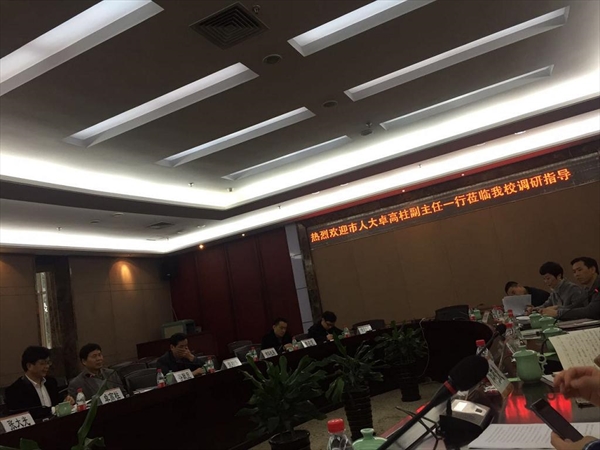 12月25日,市人大副主任卓高柱率市人大教科文卫委员会、财经委员会,市发改委、市科技局、市财政局等部门负责人一行来我校考察调研。校党委林娟娟副书记、副校长蔡曙光,党校办、科技处、计财处等校领导出席。温州大学国际合作学院、温州市通用航空飞学院(筹)院长严晓鹏、副院长包含丽参加本次会议。