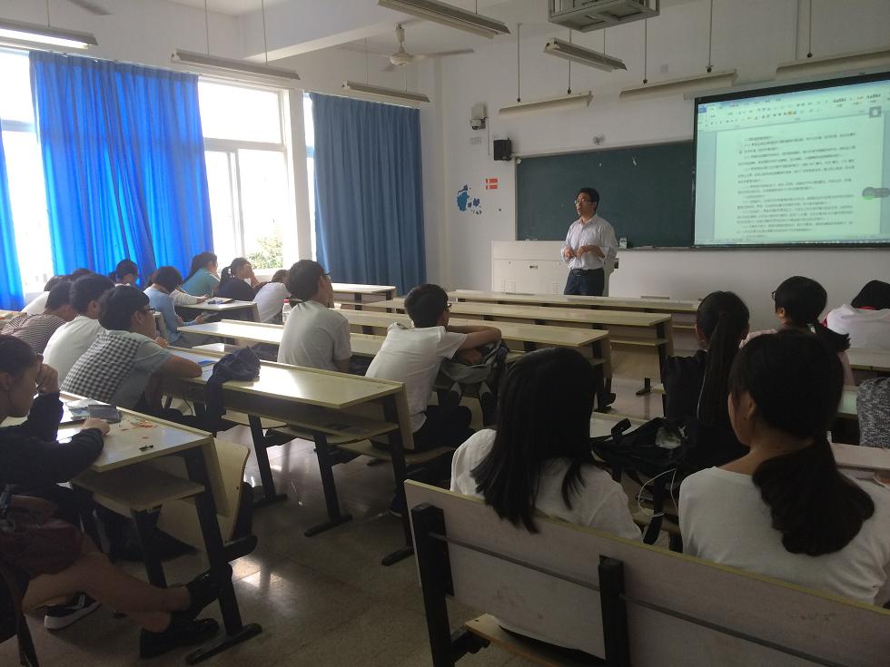 10月9日中午13点30分,国际合作学院王洪斌博士在北校区3号楼307教室为国际经济与贸易(国际化)专业全体新生开展专业导读课,日本成人无码