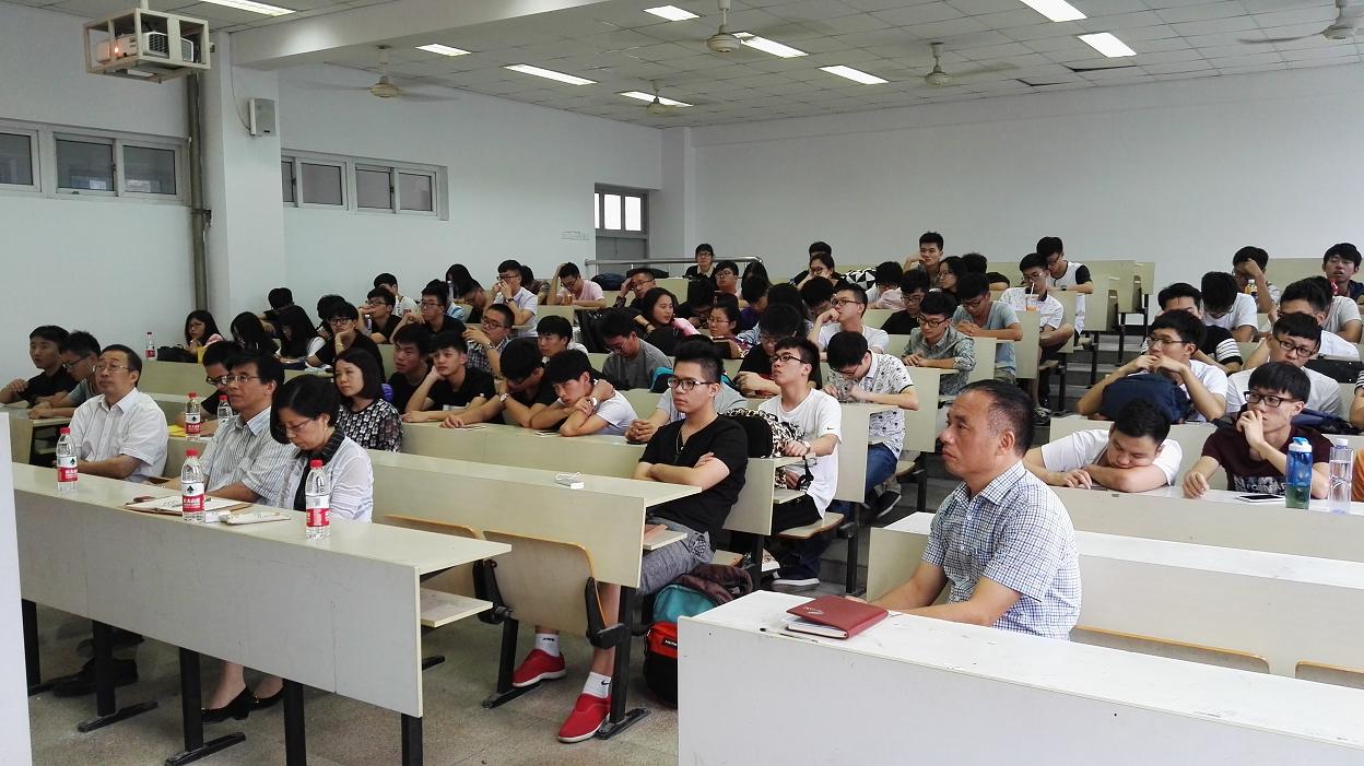 陈军副院长以“草船借箭”和“借船出海”两个生动的比喻,向全体同学介绍了台湾中华大学的办学师资和硬件设备,希望同学们借助中华大学优良的学习交流平台,努力把握好短暂的学习交流时间,使自己的专业学习能更上一层楼。